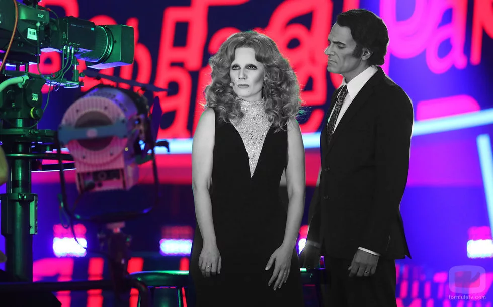 La cantante Diana Navarro y el actor y guionista Luis Larrodera interpretan a Mina y Alberto Lupo con la canción "Parole, parole" en la segunda gala de 'Tu cara me suena 6'.
