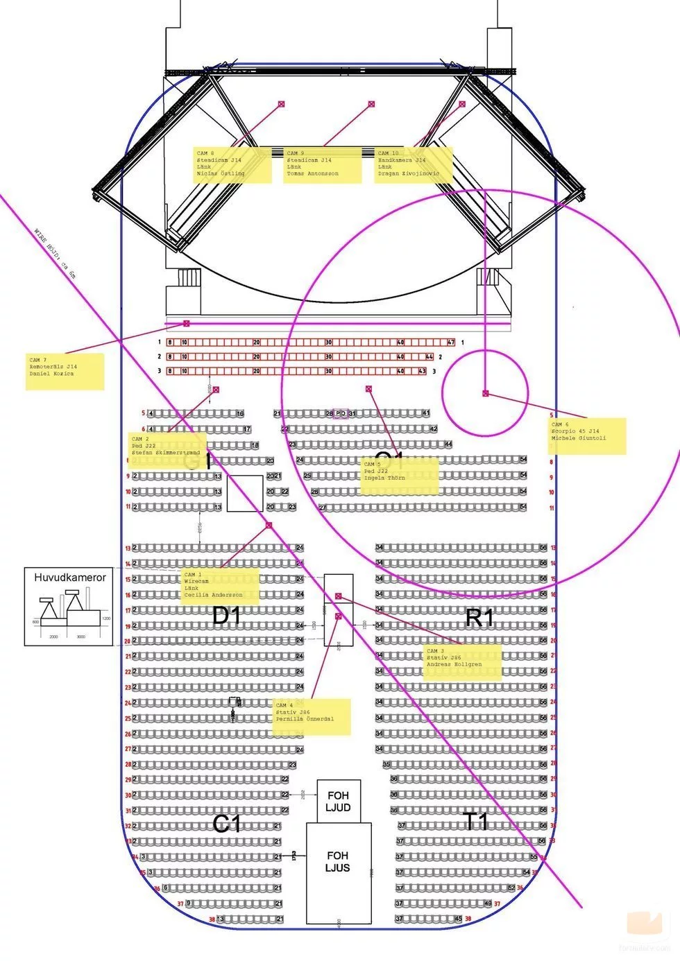 Planta técnica del escenario del Melfest 2020 para la disposición de cámaras, iluminación y otros elementos de producción.