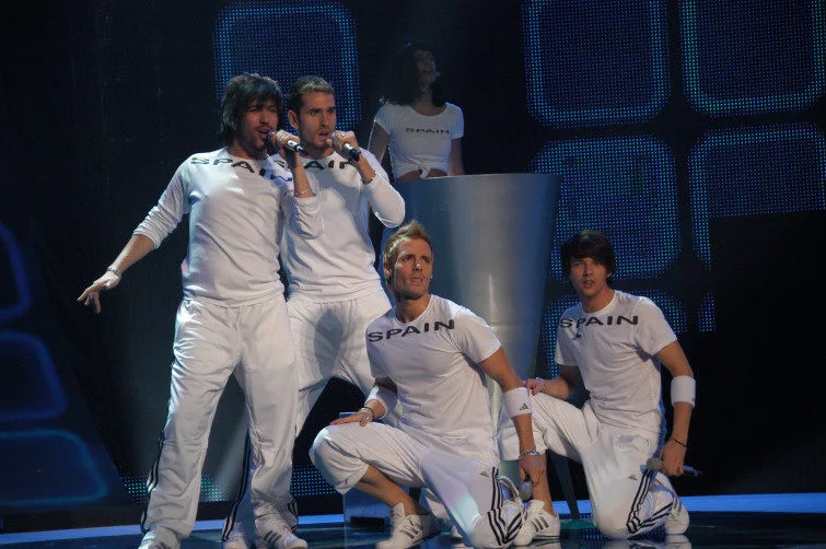 Mikel, Javi, Basty y Ony ensayando "I love you, mi vida" para la final de la 52ª edición de Eurovisión