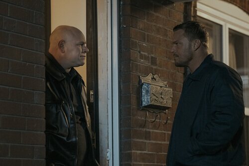 Alan Ritchson y Domenick Lombardozzi aparecen en una imagen del capítulo 'El mejor de Nueva York' de la serie 'Reacher'.