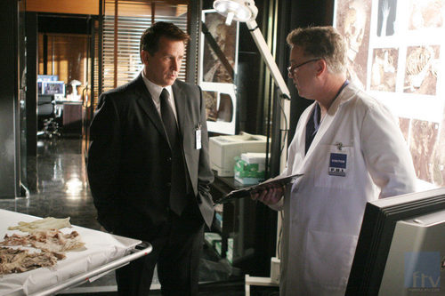 Jack Malone habla con el forense en el capítulo "¿Dónde y por qué?" de la serie 'Sin rastro'.
