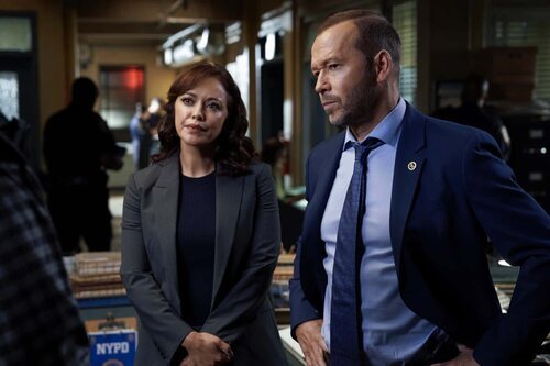 Donnie Wahlberg y Marisa Ramirez aparecen en una foto del episodio 13x04 de 'Blue Bloods' con fecha de estreno el Viernes, 28 de Octubre de 2022.