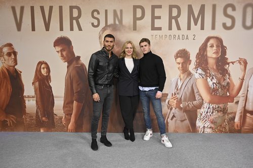 Los tres intérpretes posan juntos en la rueda de prensa de la temporada final de 'Vivir sin permiso'. El primero encarna al malvado Freddy, la segunda a Chon y el tercero al mexicano Daniel Arteaga.