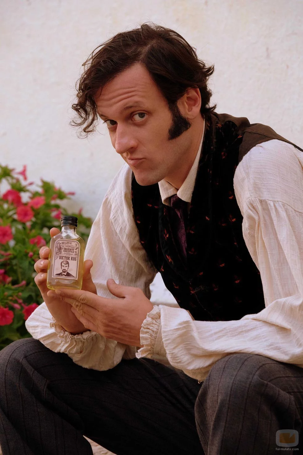 Edu Soto es León Cavestany, charlatán, buhonero y 'vendeburras' que ayuda a resolver casos a Víctor en la segunda temporada de 'Víctor Ros'.