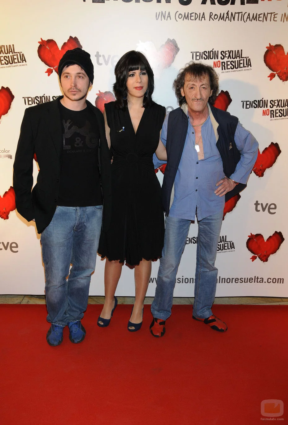 El actor Eduardo Gómez con su novia, Jessica, 38 años menor que él, y su hijo, en la première de 'Tensión sexual no resuelta'.