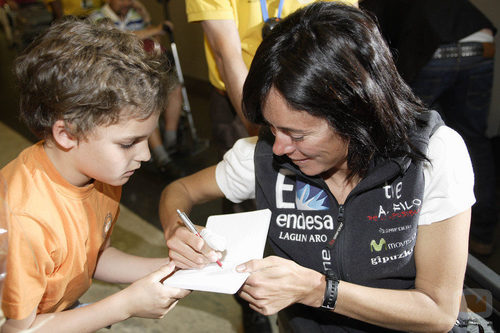 Edurne firma un autógrafo.