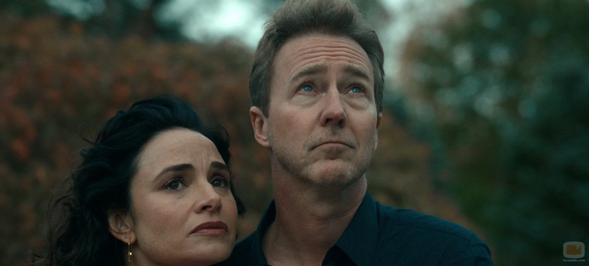 Los actores Edward Norton y Mia Mestro, en una imagen promocional de la serie 'Un futuro desafiante' ('Extrapolations').