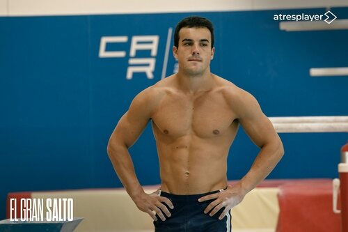 Óscar Casas metido en el papel del gimnasta olímpico Gervasio Deferr en 'El gran salto', la serie original de Atresplayer.