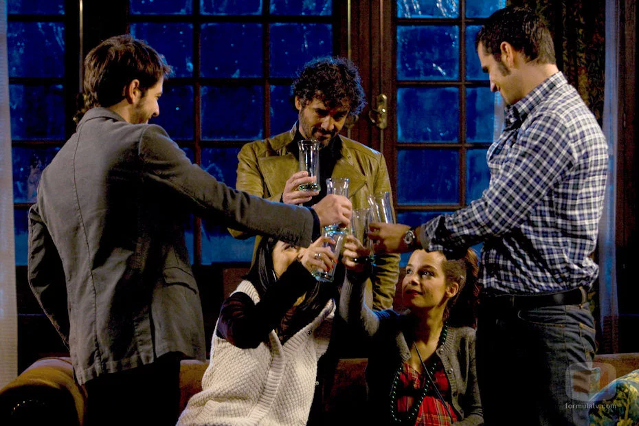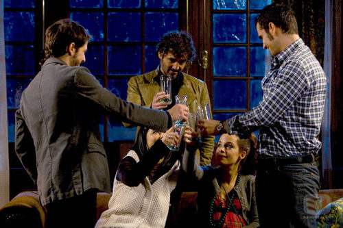 Los protagonistas de 'Herederos' (La 1) brindan en esta imagen del capítulo "El testamento".