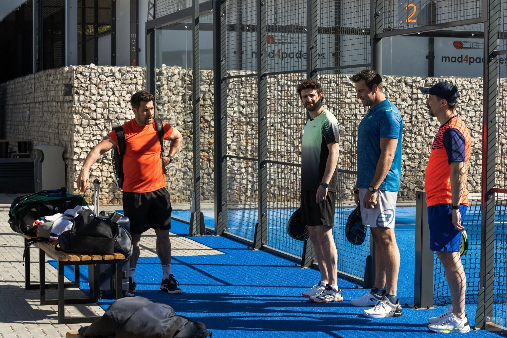 Los personajes de Raúl Tejón, Gorka Otxoa, Fernando Gil y Fele Martínez juegan un partido de padel en la serie de Netflix.