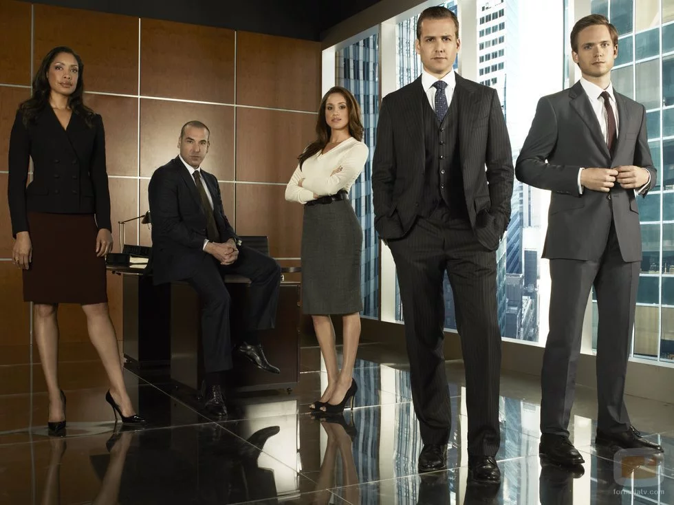Los protagonista de la serie de abogados 'Suits' posando en las imágenes promocionales de la ficción de USA Network.