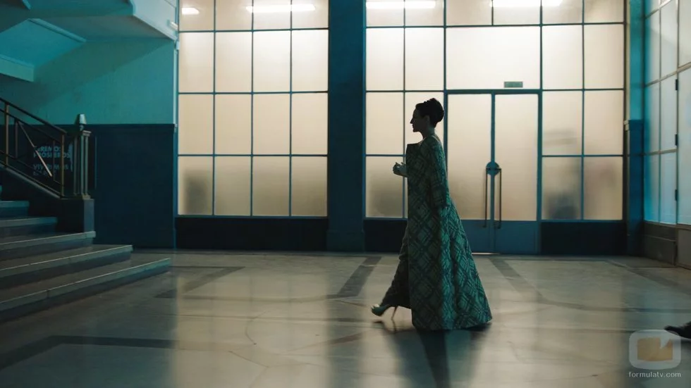 La actriz argentina porta un atuendo de clase alta en esta imagen de la ficción producida por Atresmedia en colaboración con Good Mood.