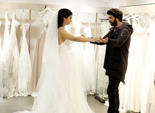 Elif se está probando vestidos de novia para su boda cuando aparece Ömer, su prometido, en la tienda para verla.