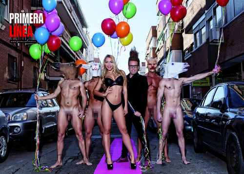La extronista de 'MYHYV' posa en ropa interior en mitad de la calle y rodeada de un grupo de hombres totalmente desnudos y musculados.