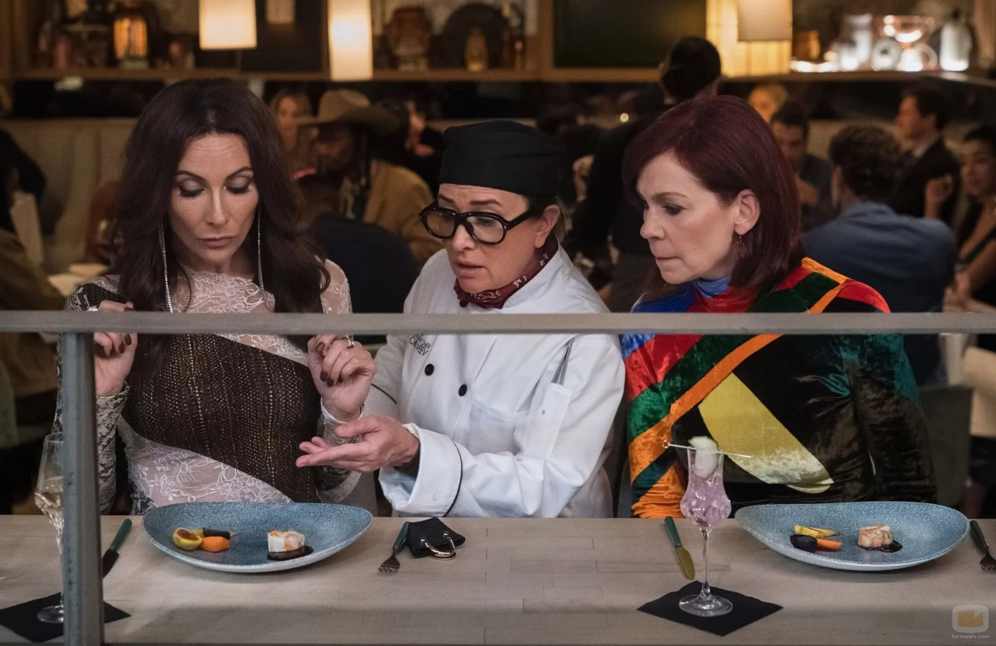 Laura Benanti, Carrie Preston y Pamela Adlon aparecen en una foto del episodio 'Elsbeth hace el pato' de la serie 'Elsbeth'.