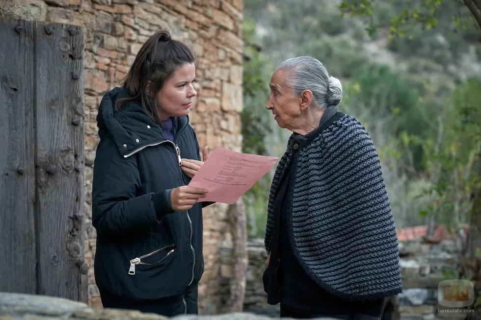 Emilia Ortiz durante el rodaje de 'El pueblo' junto a Laura Caballero