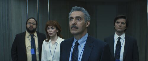 De izquierda a derecha: Zach Cherry, Britt Lower, John Turturro y Adam Scott son Dylan, Helly, Irving y Mark en la serie 'Separación'.