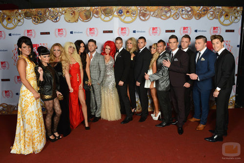 Arantxa, Abraham, Esteban, Clavelito, Gata, Core, Labrador, Ylenia, de 'Gandía Shore' junto con Holly Hagan, Vicky Pattison, Ricci Guarnaccio, Charlotte-Letitia Crosby, Gaz Beadle, James Tindale, Scott Timlin y Sophie Kasaei, de 'Geordie Shore' en los MTV Europe Music Awards 2012.
