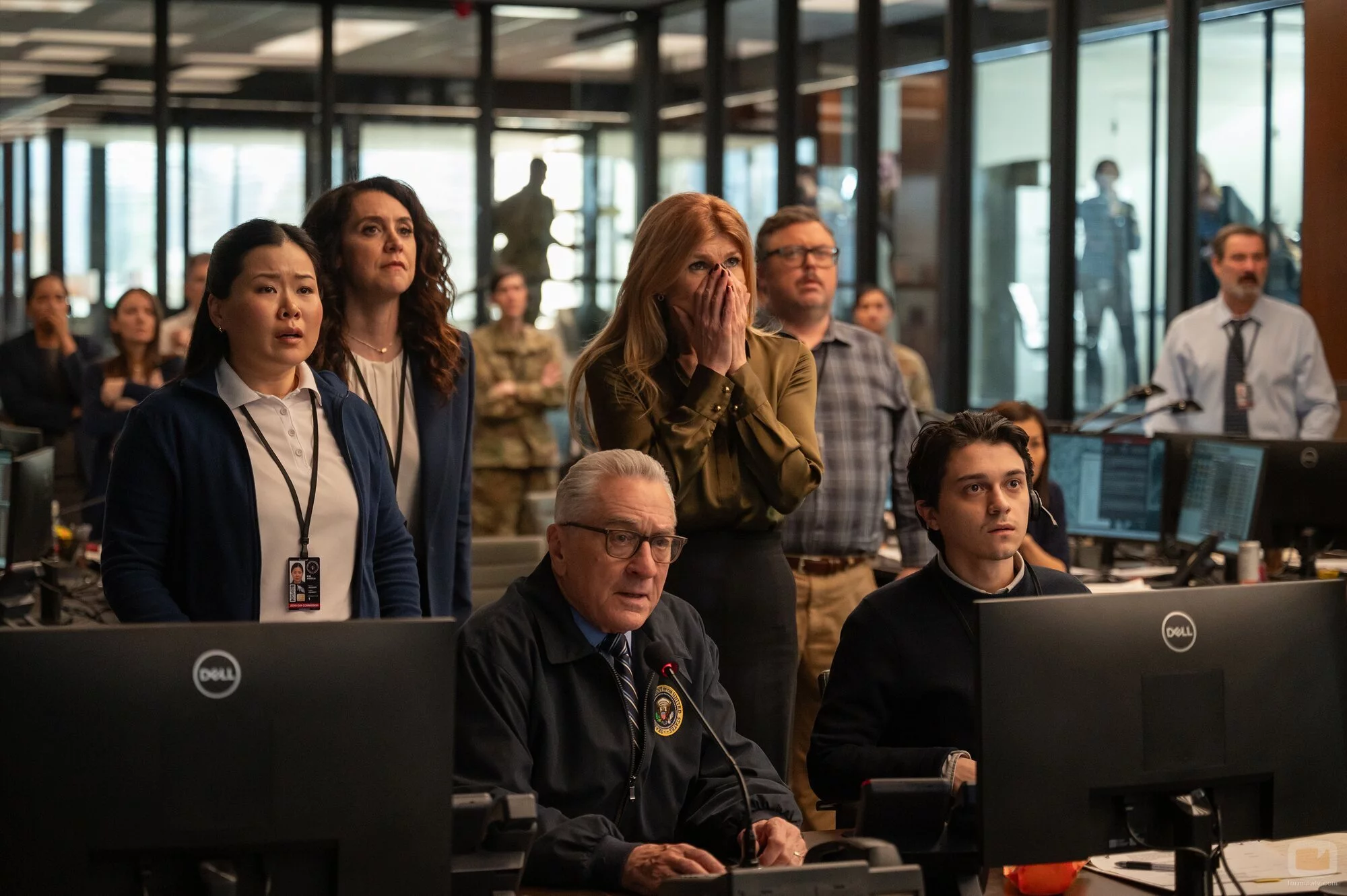 Mozhan Navabi, Robert De Niro, TJ Lee y Jay Klaitz aparecen en una foto del episodio 1x05 de 'Zero Day' con fecha de estreno el Jueves, 20 de Febrero de 2025.