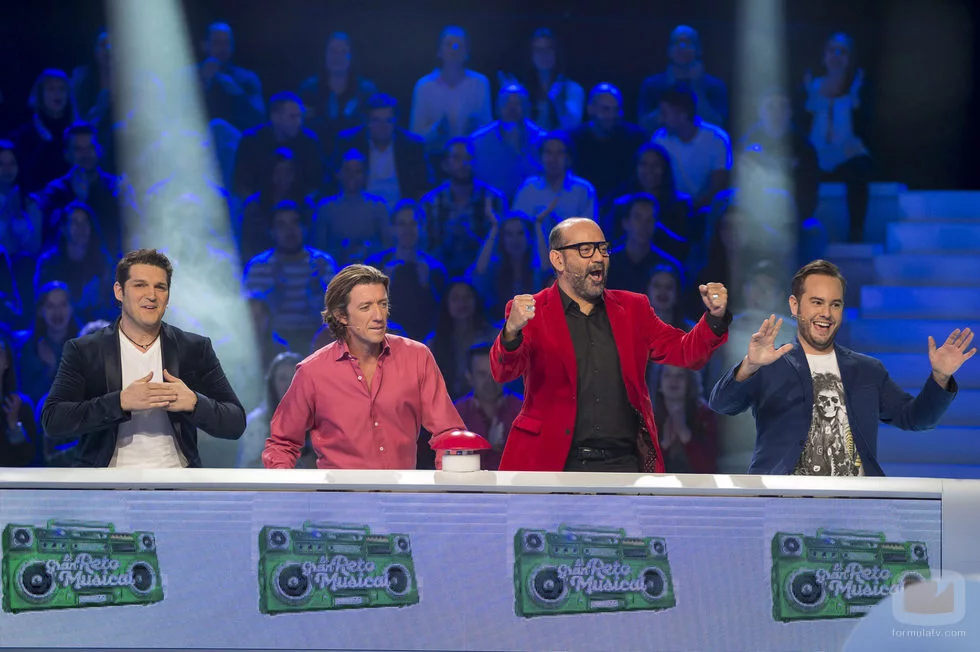 El equipo de los chicos durante el segundo programa de 'El gran reto musical' está formado por Manu Tenorio, Colate, José Corbacho y Jorge Blass.