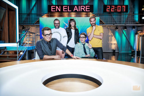 Andreu Buenafuente posa junto a sus colaboradores del programa de laSexta 'En el aire'.