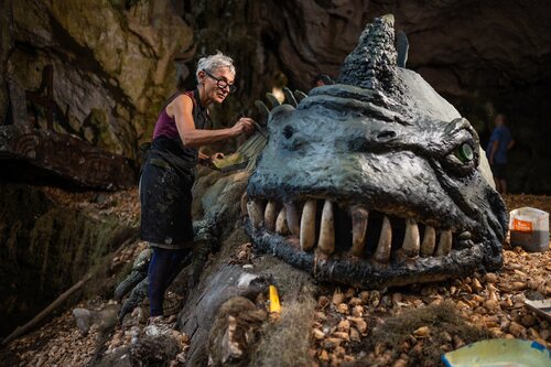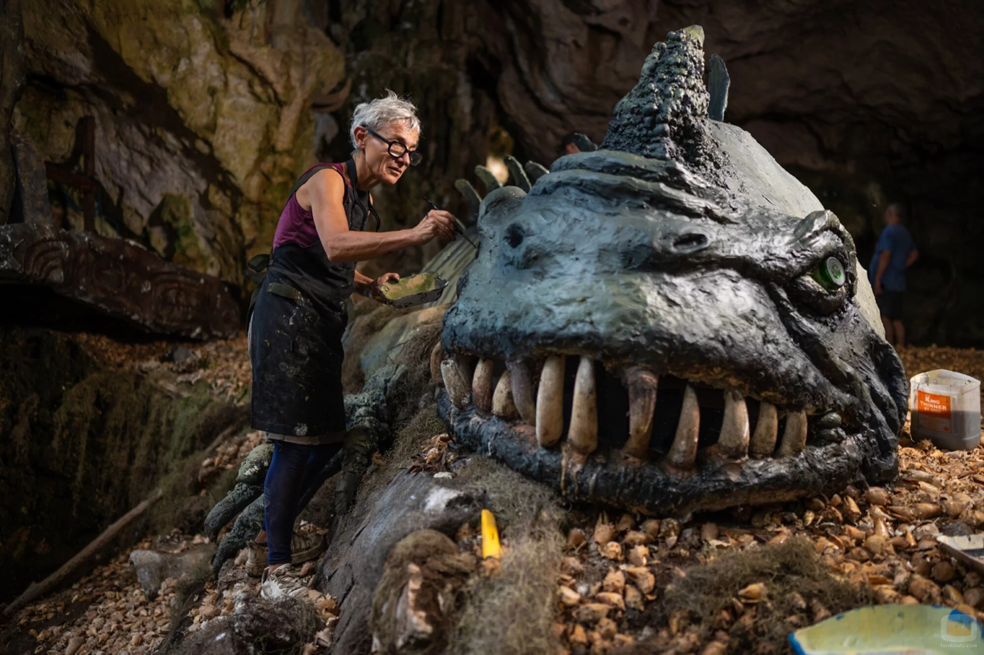 Una persona del equipo se encarga de dar los últimos detalles a la figura del reality que se encuentra en la Asamblea, lugar donde se producen las nominaciones del concurso.