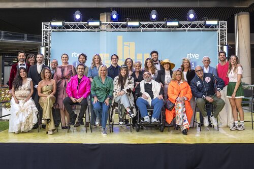 Presentadores y colaboradores posan en una foto de familia después de llegar al Estudio 5 en 'El gran desfile'.