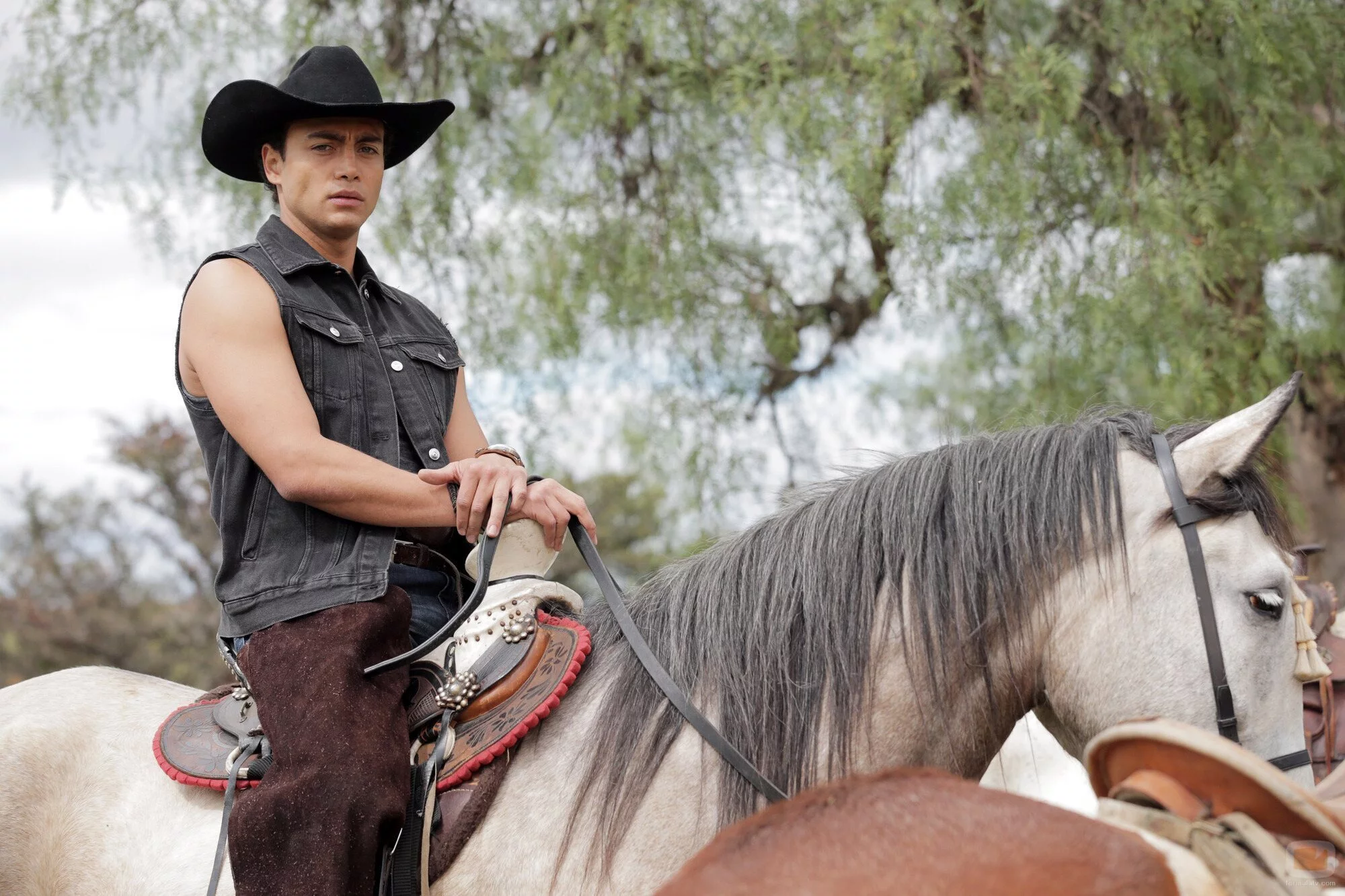 El actor Sebastián Osorio se monta a caballo interpretando a Erick Reyes en la segunda temporada de 'Pasión de gavilanes'.