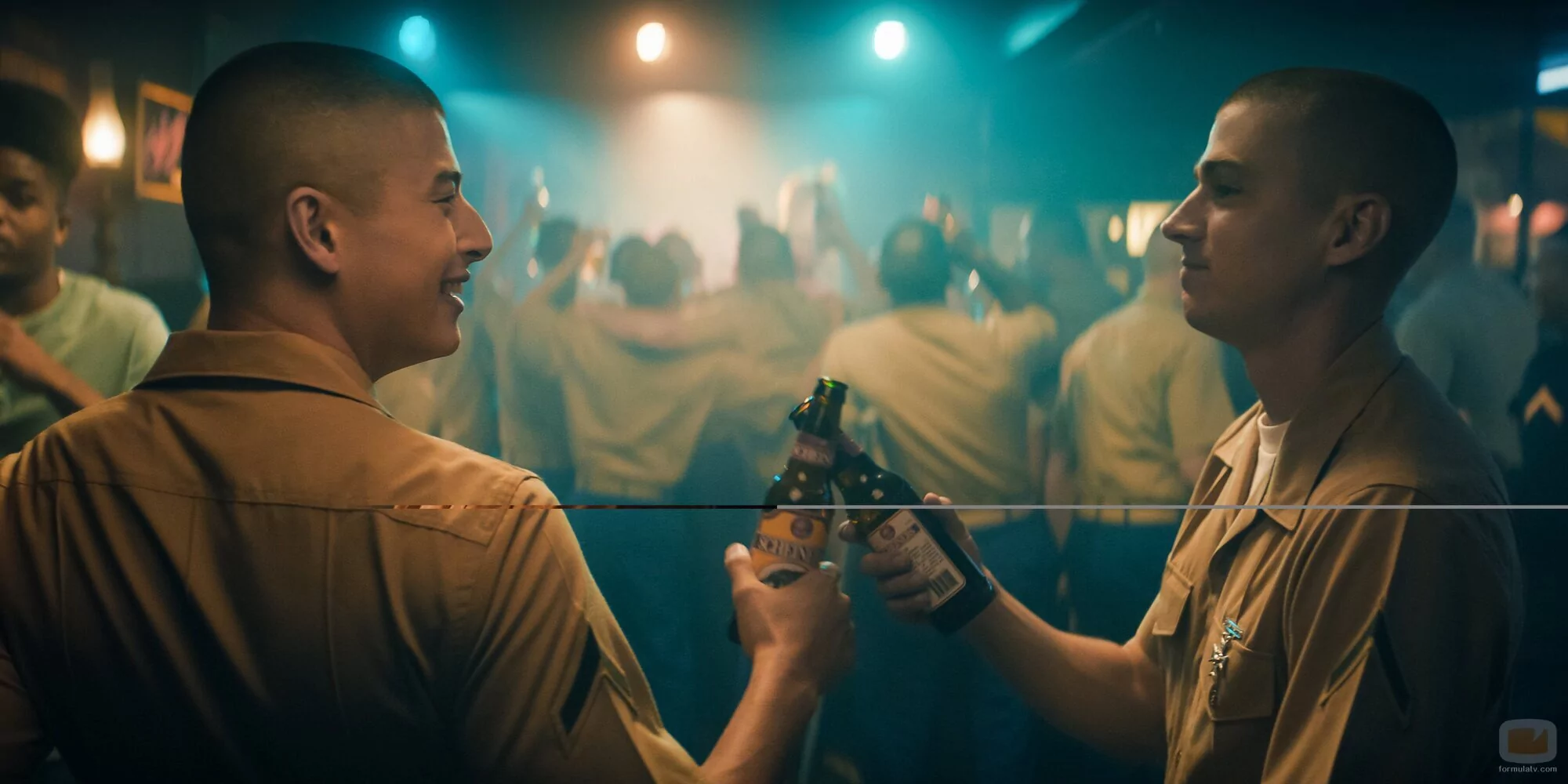 Miles Heizer y Liam Oh aparecen en una escena del capítulo 1x08 de 'Boots', la serie de televisión de Netflix.