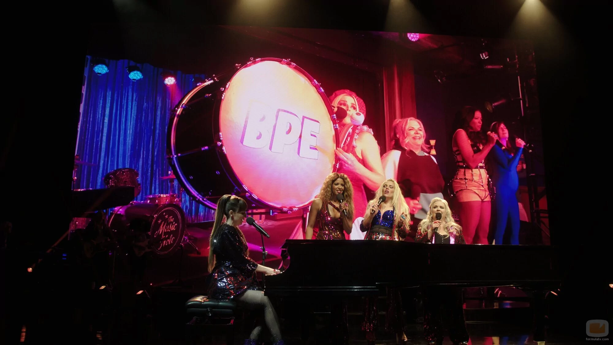 Renée Elise Goldsberry, Paula Pell, Busy Philipps y Sara Bareilles aparecen en una foto promocional del capítulo 3x06 de 'Girls 5 eva'.