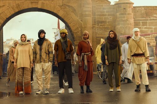 Madison Bailey, Chase Stokes, Carlacia Grant, Madelyn Cline, Rudy Pankow y J.D. aparecen en una foto promocional del episodio 4x10 de la serie 'Outer Banks'.