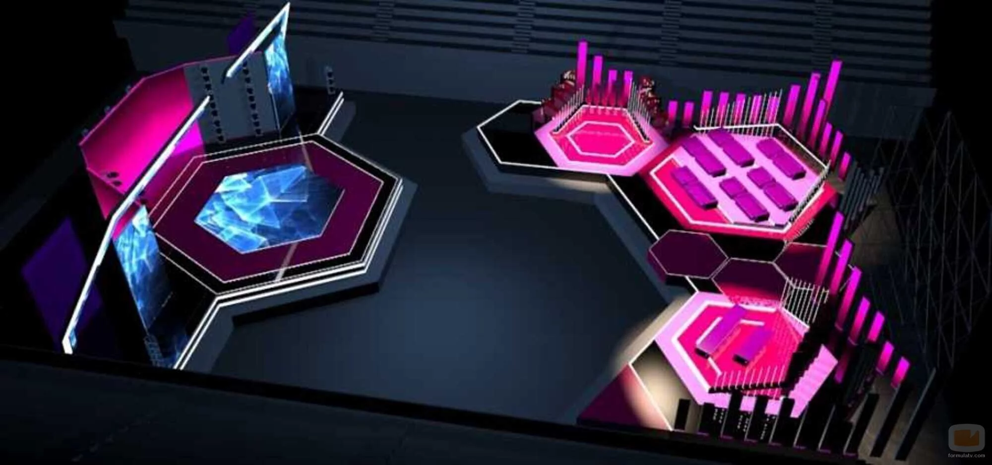 Más allá del escenario donde actúan los artistas, el plató cuenta con una Green Room, así como el set del jurado y de los presentadores de la preselección de Eurovisión 2022.