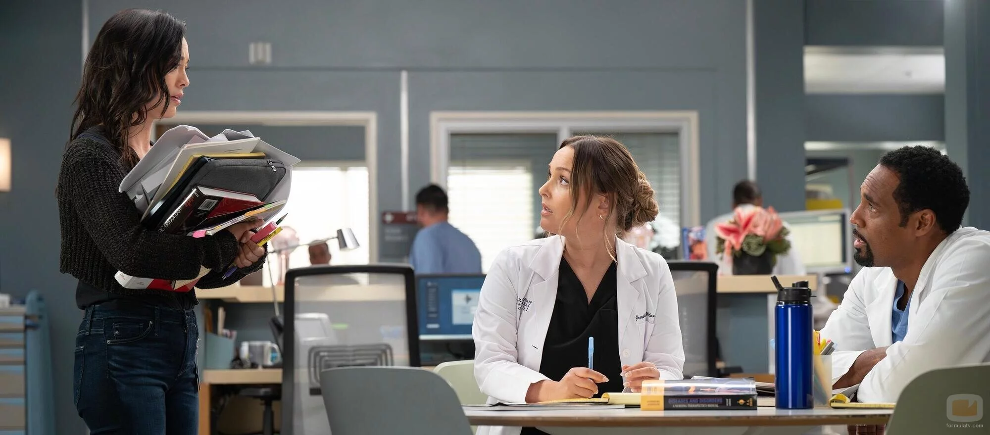 Midori Francis, Camilla Luddington y Jason George aparecen en una foto promocional del episodio 21x04 de 'Anatomía de Grey'.