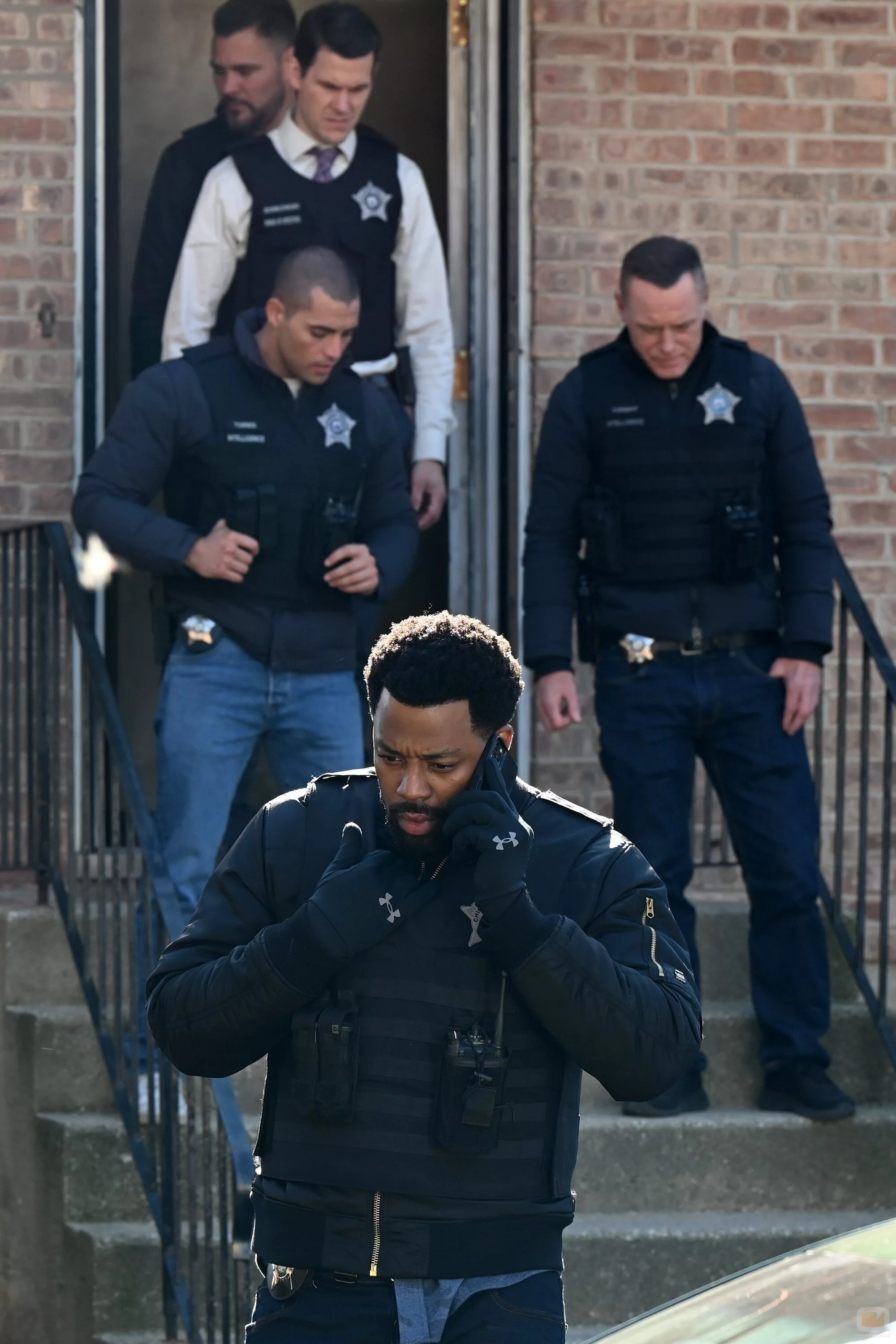 Benjamin Levy Aguilar, Jason Beghe, LaRoyce Hawkins y Patrick Flueger aparecen en una escena promocional del episodio 'Este trabajo' de 'Chicago P.D.'.