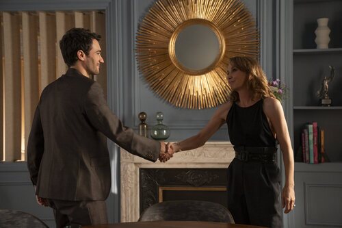 Philippine Leroy-Beaulieu y Eugenio Franceschini aparecen en una escena promocional del episodio 5x08 de la serie 'Emily en París'.
