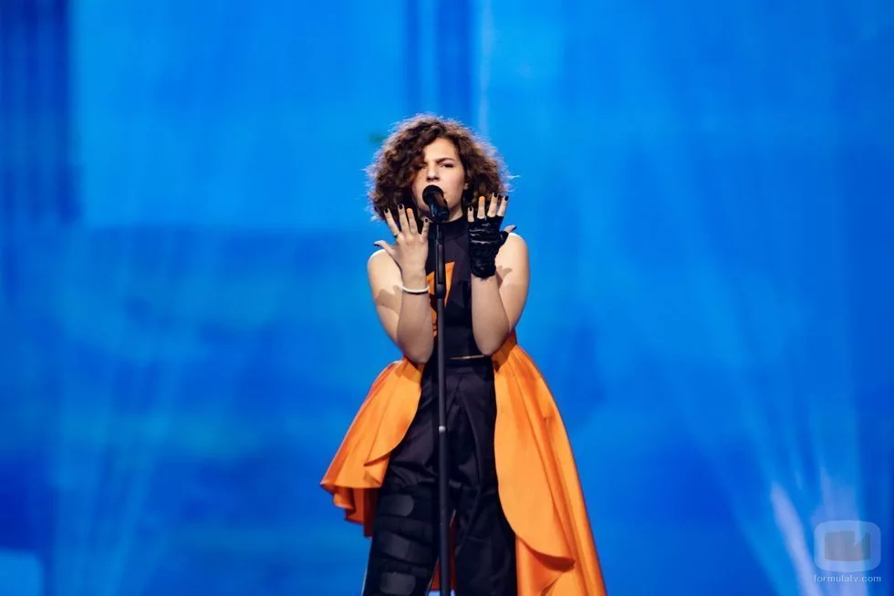 Mila Moskov, representante de Macedonia del Norte, canta "Fire" en la Gran Final del Festival de Eurovisión Junior 2019.