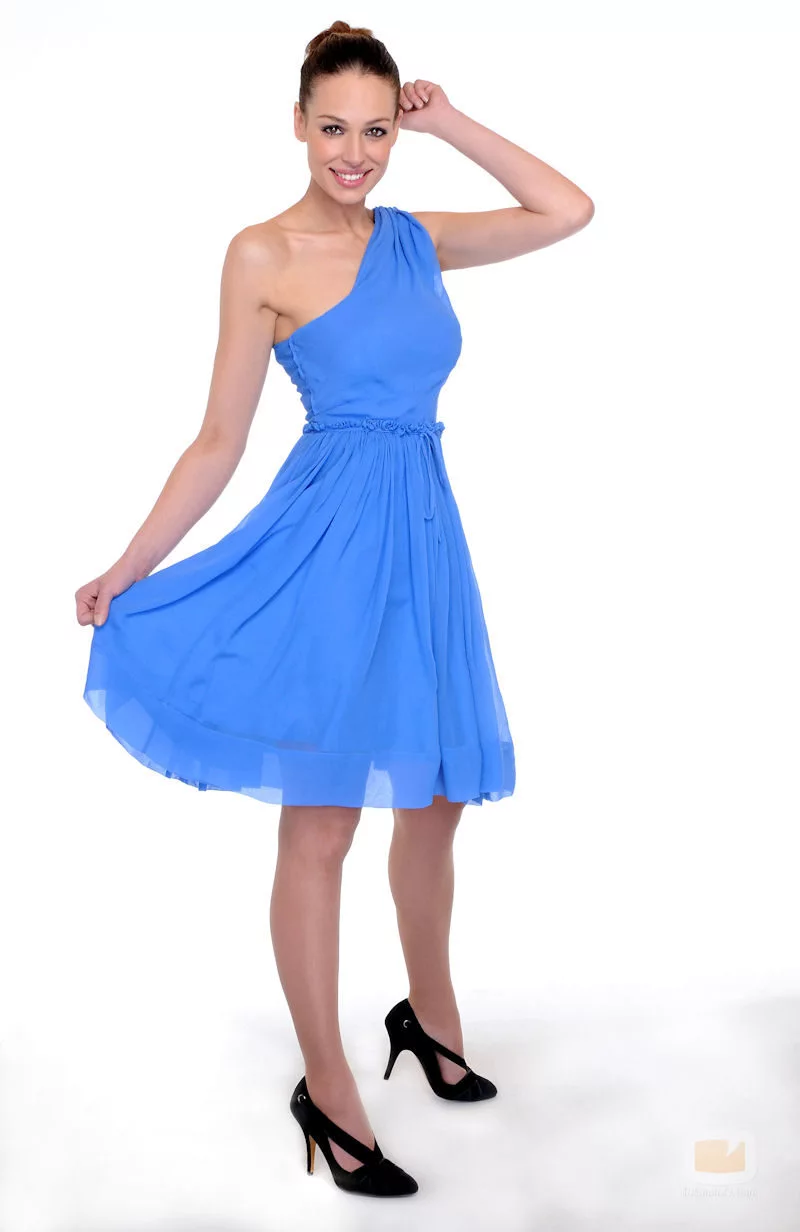 Eva González radiante con un vestido azul en 'El juego del Euromillón"