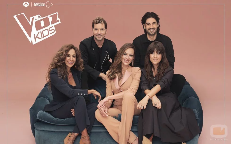 La presentadora del talent show infantil posa junto a los coaches de la edición en uno de los carteles promocionales.