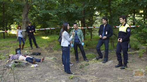 Los actores Celia Freijeiro y Eduardo Noriega en la escena del crimen durante el capítulo seis de 'Homicidios'.