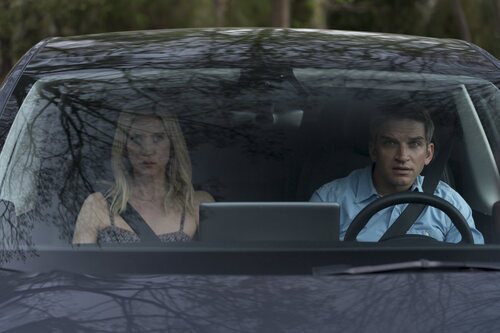 Evan Jonigkeit y Brittany Snow en 1x01 'Lugares extraños y desconocidos' de 'Las esposas cazadoras'