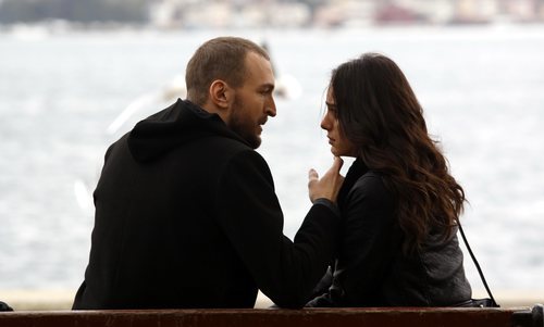 La pareja, que sigue perdidamente enamorada después de que Fatih la secuestrara, se encuentran en un banco frente al mar.