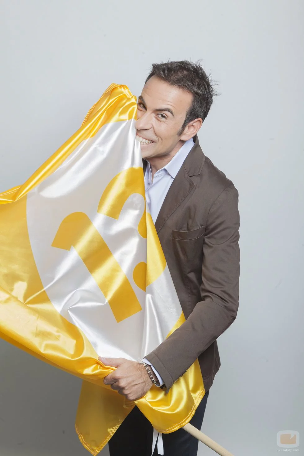 En la presentación de la nueva temporada del canal 13tv, Felipe del Campo posa con la bandera.