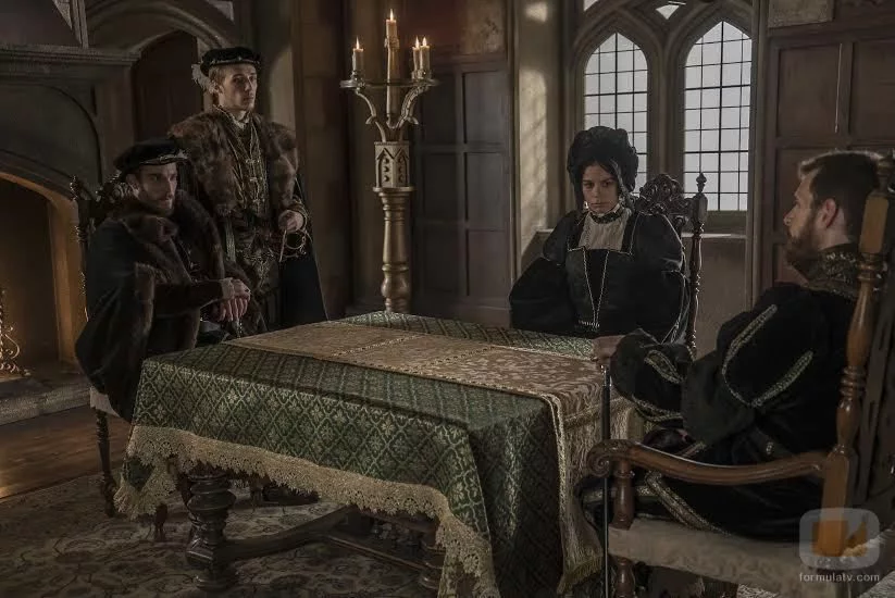 (1x15) Fernando de Habsburgo (Eric Balbás), su hijo Maximiliano, María de Austria (Laia Costa) y Carlos V (Álvaro Cervantes) en 'Carlos, rey emperador'