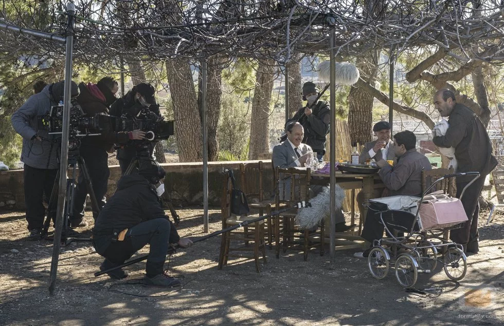 Los intérpretes de Tonet y Don Joaquim en una secuencia de exteriores de la duodécima temporada de la serie valenciana.