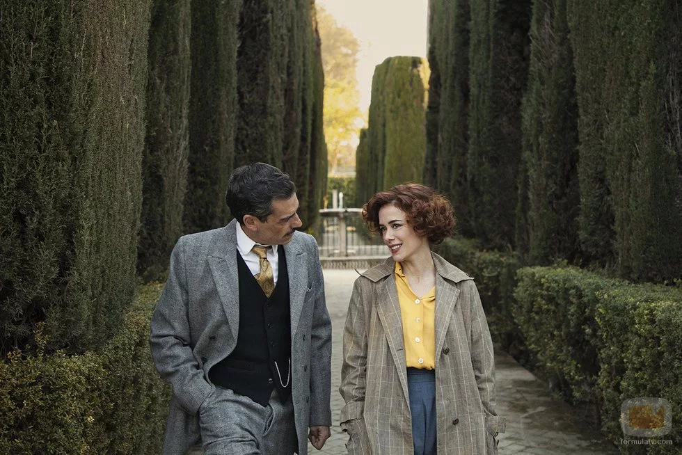 Los actores, que forman parte del rodaje de la nueva serie de TVE, pasean en una de las escenas de los primeros episodios.
