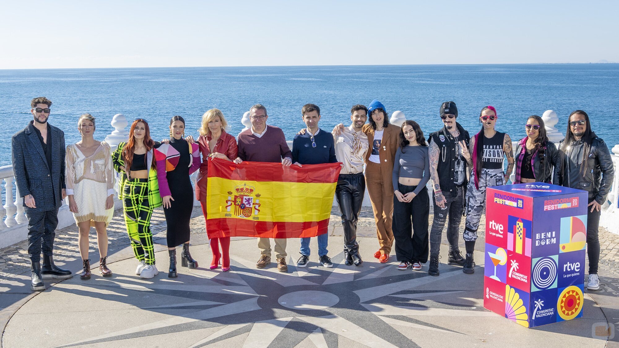 Los finalistas del Benidorm Fest 2023 junto al equipo de RTVE