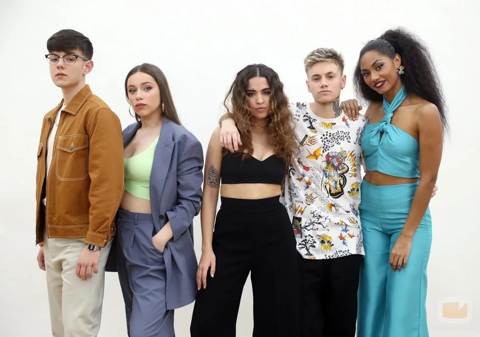 Flavio, Eva B, Anaju, Hugo Cobo y Nia Correia posan como finalistas de 'Operación Triunfo 2020' en la Final del talent show.