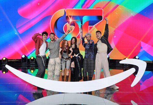 Los finalistas de 'OT 2023' Martin Urrutia, Lucas Curotto, Ruslana, Naiara, Paul Thin y Juanjo Bona en la rueda de prensa tras la final.