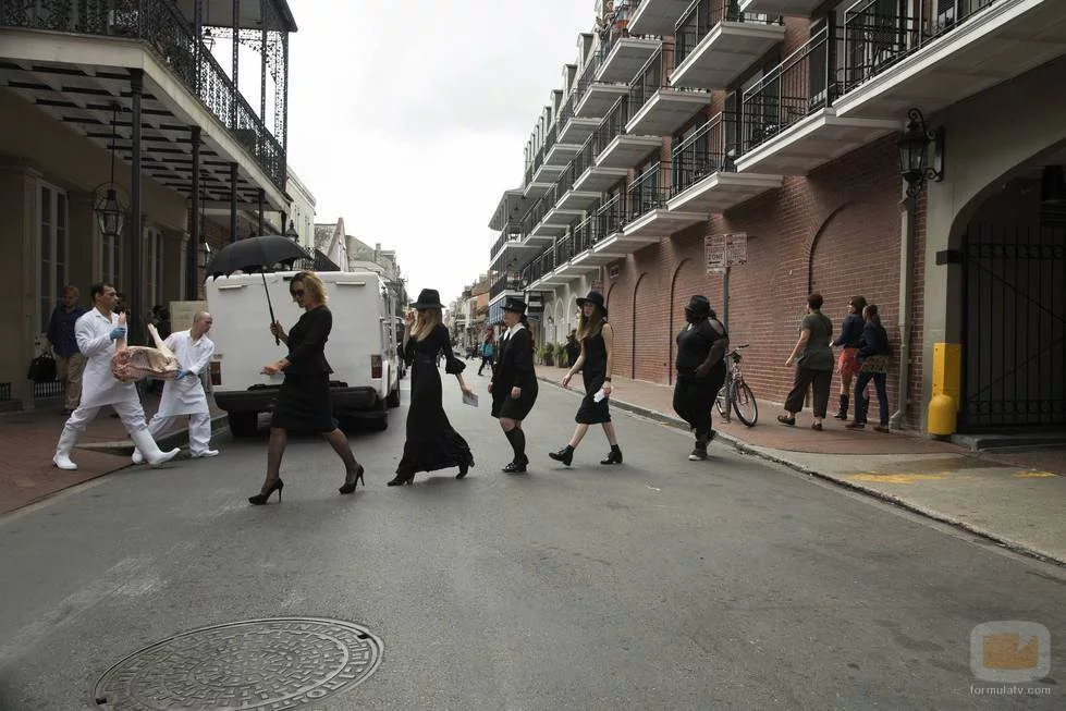 Jessica Lange lleva a Emma Roberts, Jamie Brewer, Taissa Farmiga y Gabourey Sidibe por las calles de Nueva Orleans.