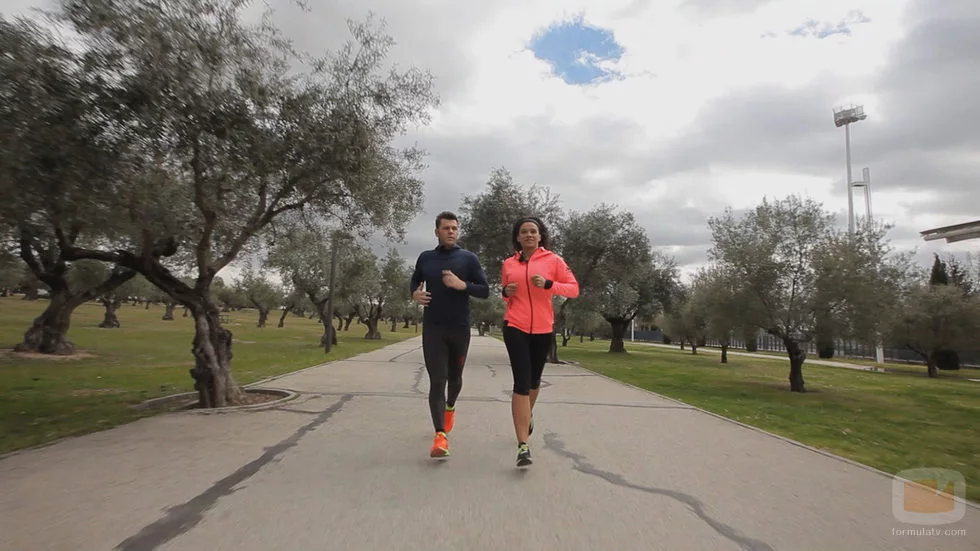 El exmotorista Fonsi Nieto y la presentadora de informativos Desirée Ndjambo se divierten entrenando en 'Nacidos para correr'.